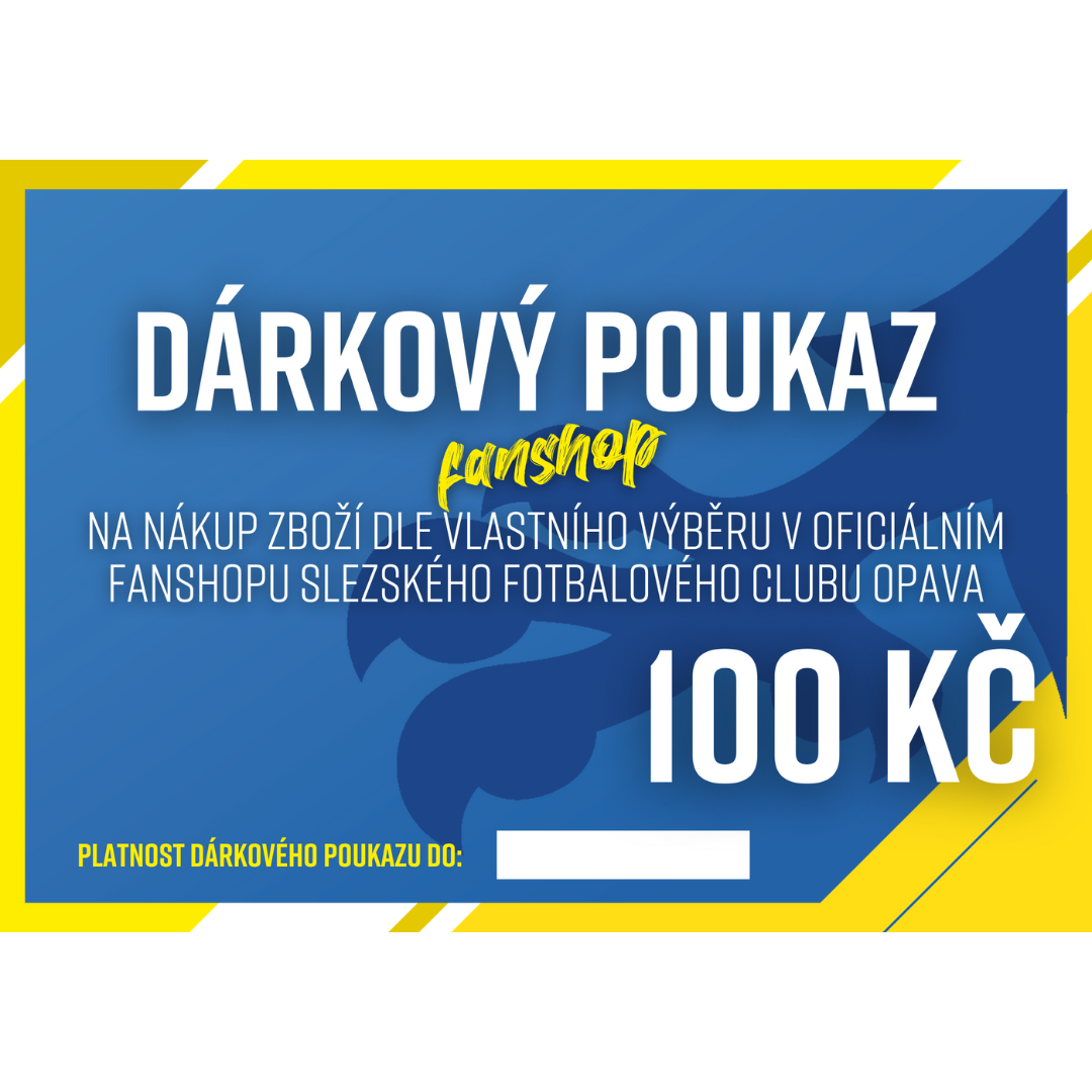 Dárkový poukaz v hodnotě 100 Kč na nákup zboží dle vlastního výběru v oficiálním Fanshopu Slezského fotbalového clubu Opava.