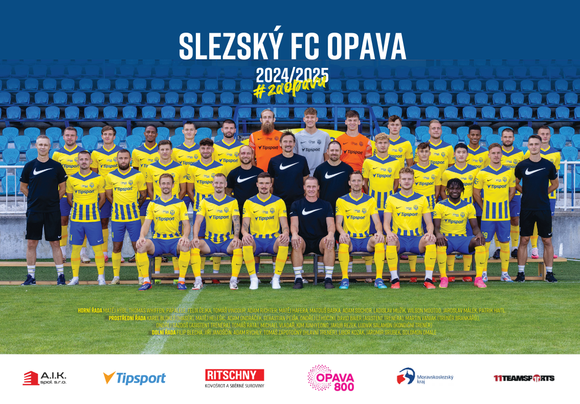 Plakát A-týmu včetně realizačního týmu Slezského FC pro sezonu 2024/2025.
