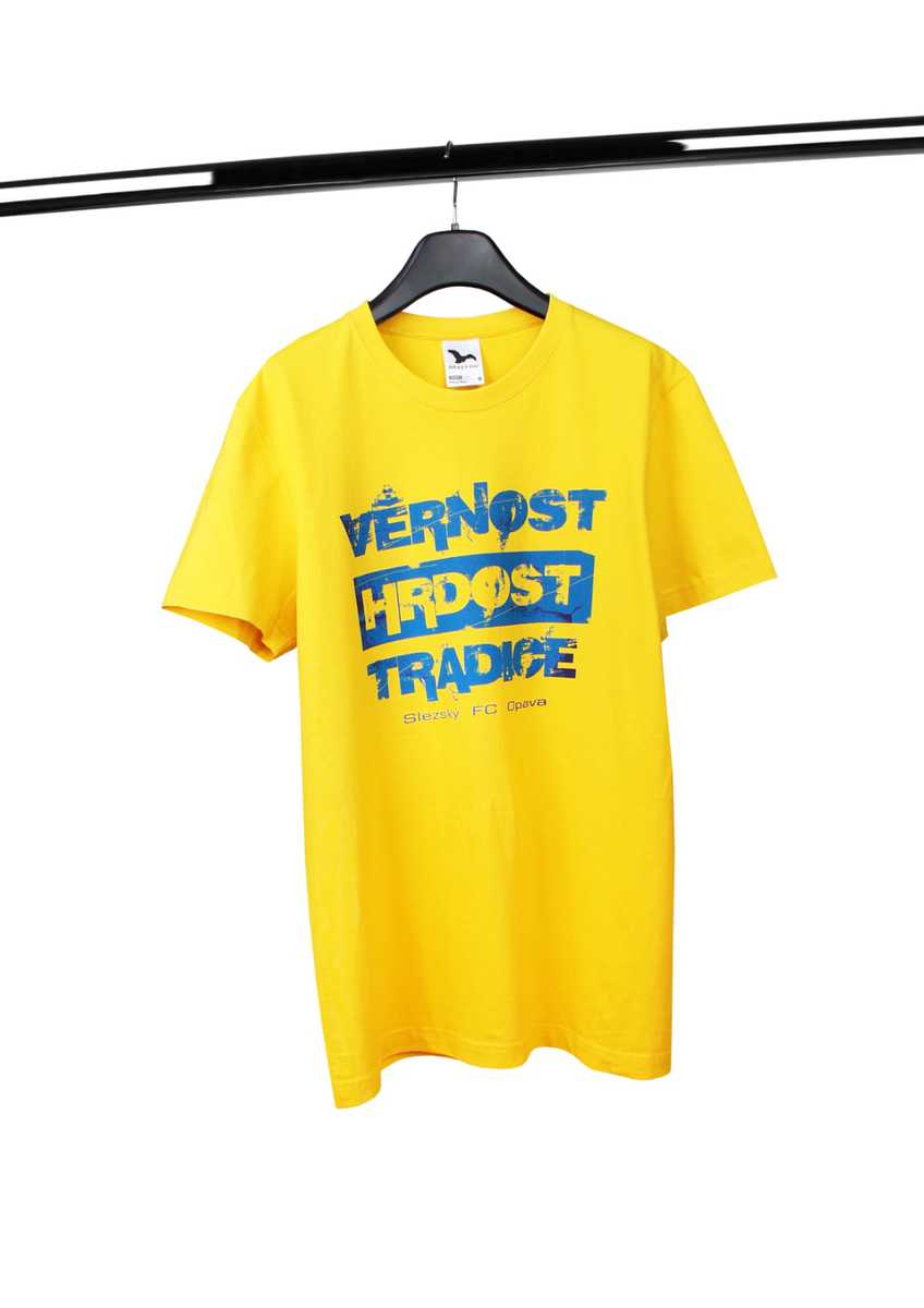 399 Kč s DPHŽluté tričko s předním sítotiskem VĚRNOST, HRDOST, TRADICE. Na zádech pak najdete heslo #ZAOPAVU.